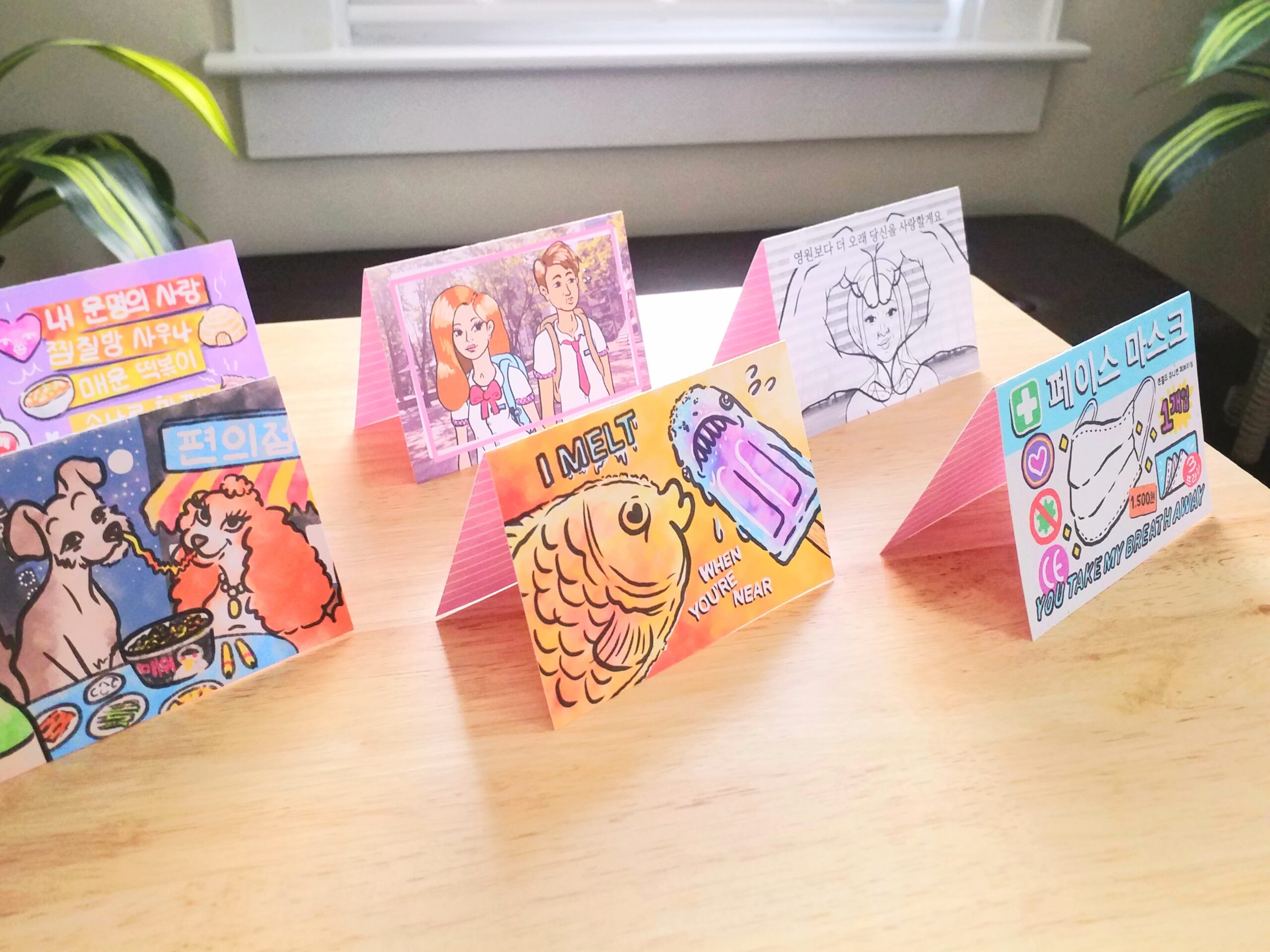 𝙿𝚎𝚛𝚏𝚎𝚌𝚝 𝚏𝚘𝚛 𝚊𝚗𝚢 𝚊𝚟𝚒𝚍 𝙺-𝚙𝚘𝚙 𝚘𝚛 𝙺-𝚍𝚛𝚊𝚖𝚊 𝚏𝚊𝚗, 𝚎𝚊𝚌𝚑 𝚙𝚊𝚌𝚔 𝚌𝚘𝚖𝚎𝚜 𝚠𝚒𝚝𝚑 𝚝𝚎𝚗 𝚌𝚊𝚛𝚍𝚜—𝚏𝚘𝚞𝚛 𝚍𝚒𝚏𝚏𝚎𝚛𝚎𝚗𝚝 𝚍𝚎𝚜𝚒𝚐𝚗𝚜 𝚒𝚗 𝚙𝚊𝚒𝚛𝚜 𝚙𝚕𝚞𝚜 𝚝𝚠𝚘 𝚞𝚗𝚒𝚚𝚞𝚎 𝚍𝚎𝚜𝚒𝚐𝚗𝚜 𝚋𝚢 𝚊𝚛𝚝𝚒𝚜𝚝 𝙹. 𝚂𝚑𝚎𝚊 𝙻𝚎𝚎; 𝙲𝚘𝚕𝚘𝚛𝚎𝚍 𝚘𝚗 𝚋𝚘𝚝𝚑 𝚜𝚒𝚍𝚎𝚜 𝚠𝚒𝚝𝚑 𝚊 𝚕𝚒𝚗𝚎-𝚛𝚞𝚕𝚎𝚍 𝚛𝚎𝚟𝚎𝚛𝚜𝚎 𝚏𝚘𝚛 𝚢𝚘𝚞𝚛 𝚖𝚘𝚜𝚝 𝚛𝚘𝚖𝚊𝚗𝚝𝚒𝚌 𝚖𝚎𝚜𝚜𝚊𝚐𝚎𝚜. 𝟺.𝟷𝟹 × 𝟸.𝟿” 𝚏𝚞𝚕𝚕𝚢 𝚏𝚘𝚕𝚍𝚎𝚍. 𝙴𝚗𝚟𝚎𝚕𝚘𝚙𝚎𝚜 𝚊𝚛𝚎 𝚗𝚘𝚝 𝚒𝚗𝚌𝚕𝚞𝚍𝚎𝚍.